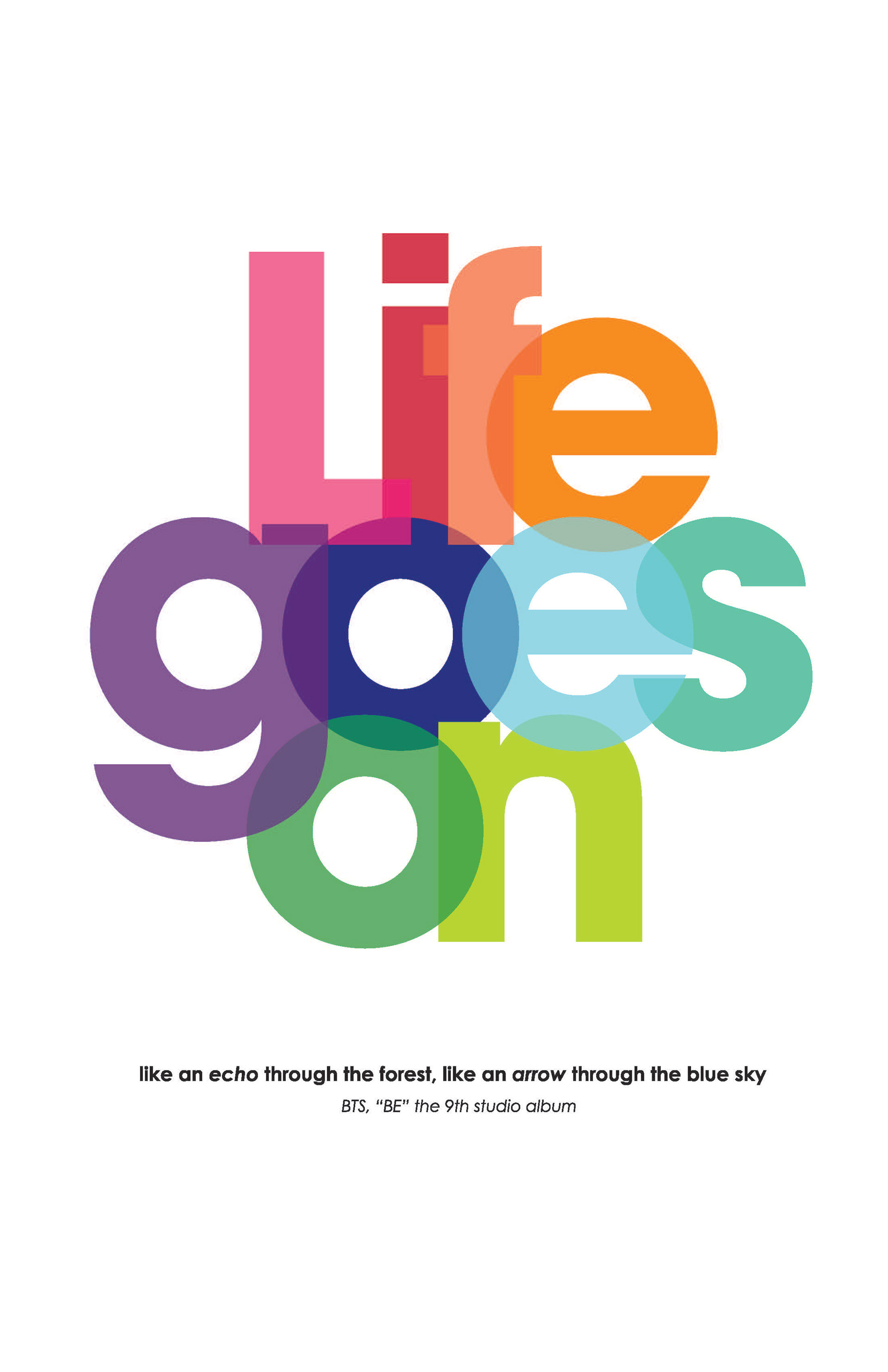 The goal of this project is to utilize various techniques and methods to manipulate text and create a compelling design. By using approaches such as slicing, overlapping, counter, etc. on the text, the motivational quote or phrase can be modified in unique and dynamic ways that properly convey the feeling of the message. Implementing subtext also allows for an establishment of harmony and balance throughout the design without having the entire phrase utilizing the manipulation tactics. Employing color into the design and experimenting with different palettes further pushes the connotations of the quote and helps create a visual that matches the tone of the overall piece. Then to finally apply our typographic posters in a digital mockup to help visualize how the composition withstands in a variety of contexts.
