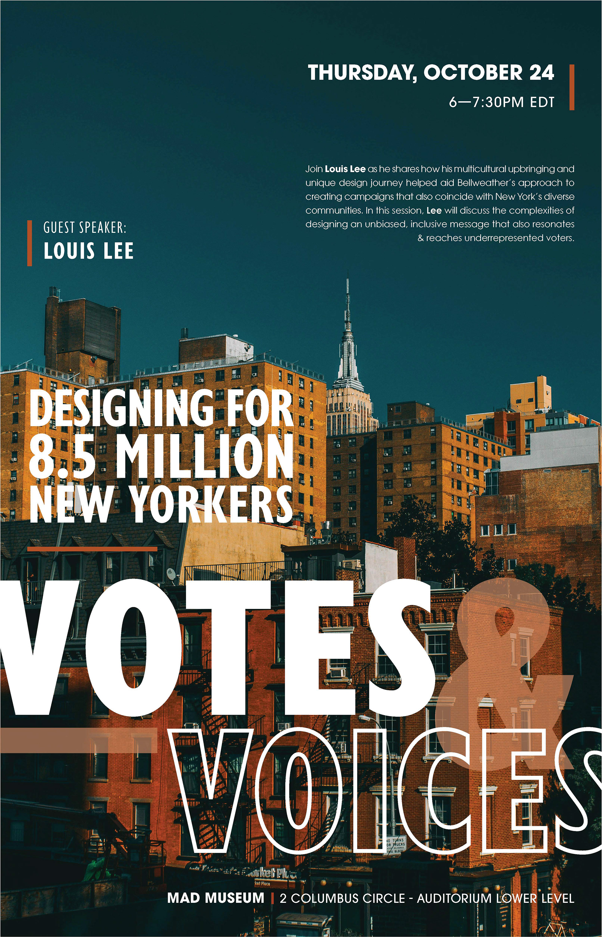 The goal of this project is to utilize various typographic techniques in order to create a unique, compelling poster that coincides with the event chosen. By using methods such as creating hierarchy, visual punctuation and a focal point for the title help aid the design further by making the poster eye-catching and captivating to read. Implementing photography that helps determine how the text will be placed and in what ways an interesting form of hierarchy can be produced. Using color on the text to create harmony and intrigue between the type and photo. Then to finally print the poster at full scale in order to determine the successfulness of the design.